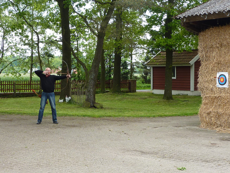 Weiterhin kann man auf unserem Hof das Bogenschießen erlernen. Der Bogensport ist eine aufblühende Sportart, die sich immer größerer Beliebtheit erfreut. Beim Bogenschießen ist nicht nur Kraft erforderlich, sondern vor allem auch Konzentration und Zielvermögen. Zudem bringt das Bogenschießen eine Menge Spaß und fördert die Fähigkeit, schwierige Bewegungsabläufe zu koordinieren. Es stehen unterschiedliche Bögen für Anfänger und Fortgeschrittene zur Verfügung.