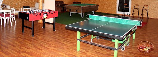 Unser Ferienhof ist umgeben von Bäumen und viel Natur, dementsprechend bietet unser Hofgelände eine Menge Platz zum Spielen und Toben. Auch zum Fahrradfahren bietet der Hof genug Platz. Zudem befinden sich auf dem Dachboden ein Billardtisch, eine Tischtennisplatte, ein Tischkicker und ein Dartautomat, so dass auch bei Regen keine Langeweile aufkommen kann.