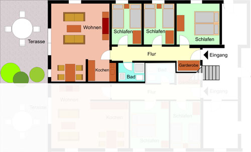 Die Wohnung „Lönneberga“ ist eine Erdgeschosswohnung mit einer Größe von 68 m². Die Wohnung hat drei Schlafzimmer, einen Wohn-Essbereich mit integrierter Küchenzeile und ein Badezimmer mit Dusche und WC. Im Außenbereich ist eine Terrasse in Südwestlage der Wohnung angeschlossen. Sie bietet ausreichend Platz für bis zu 6 Personen.